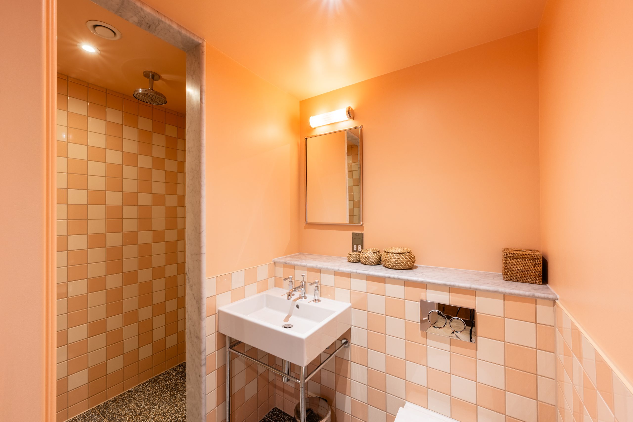 We completed bathroom and spa tiling packages across 114 Art Deco–inspired serviced apartments.